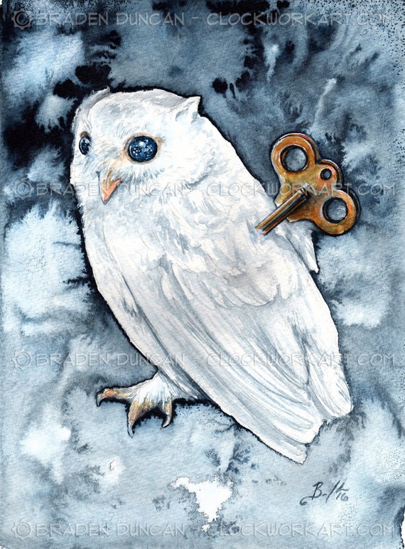 Clockwork Sentinel Watercolour Owl Print Etsy
